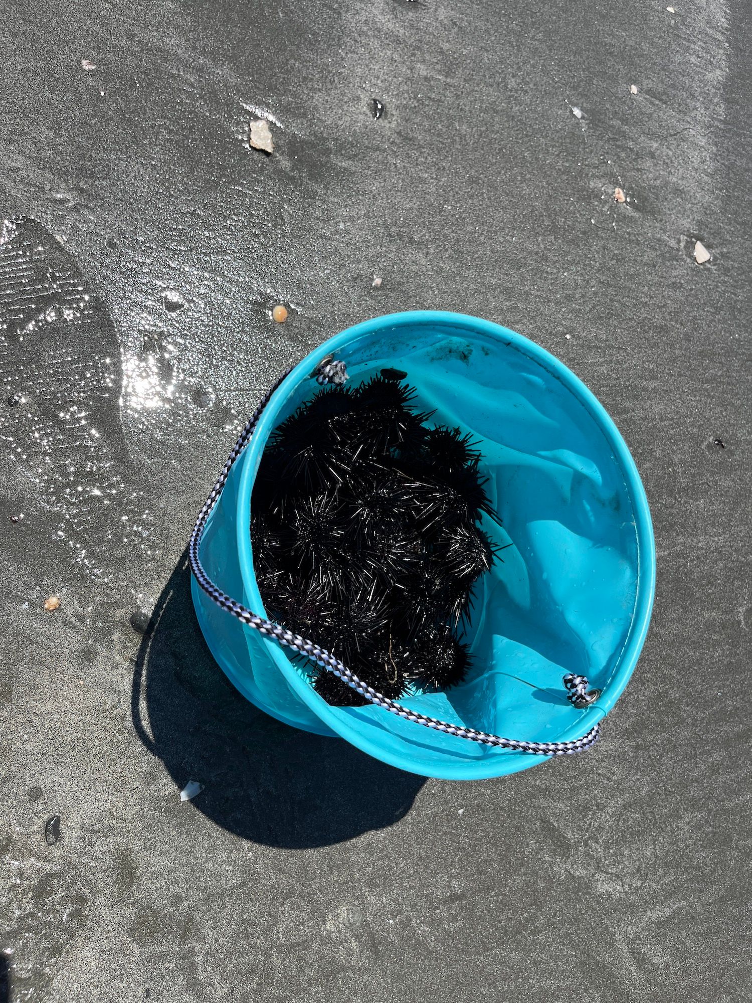 逗子マリン連盟の主催する、逗子海岸の磯焼け対策のうに拾いに行ききました。