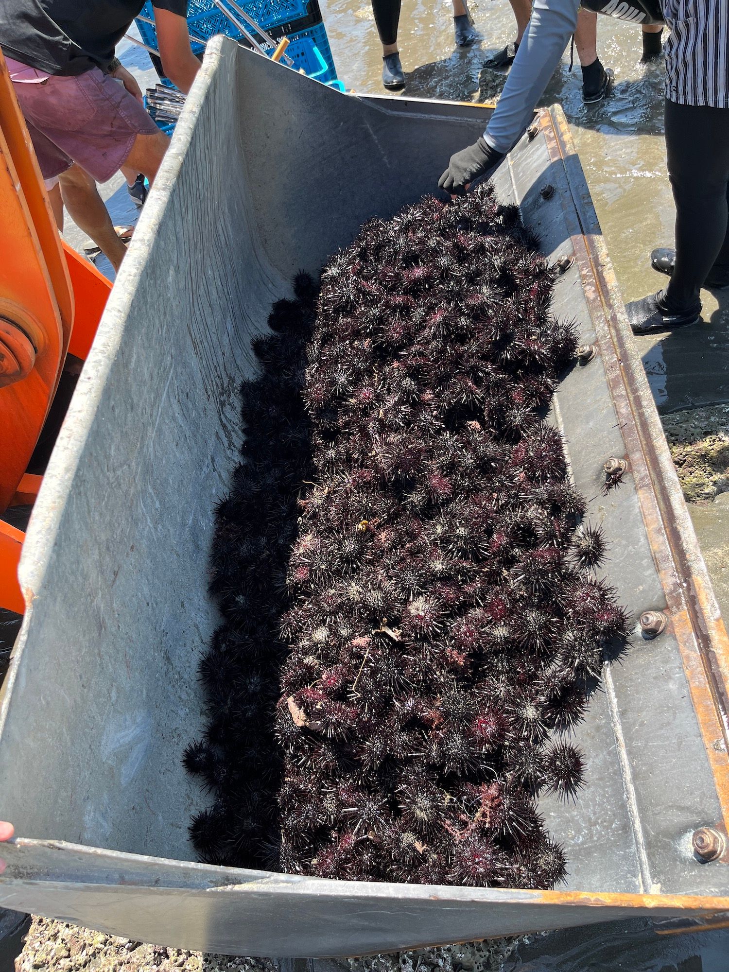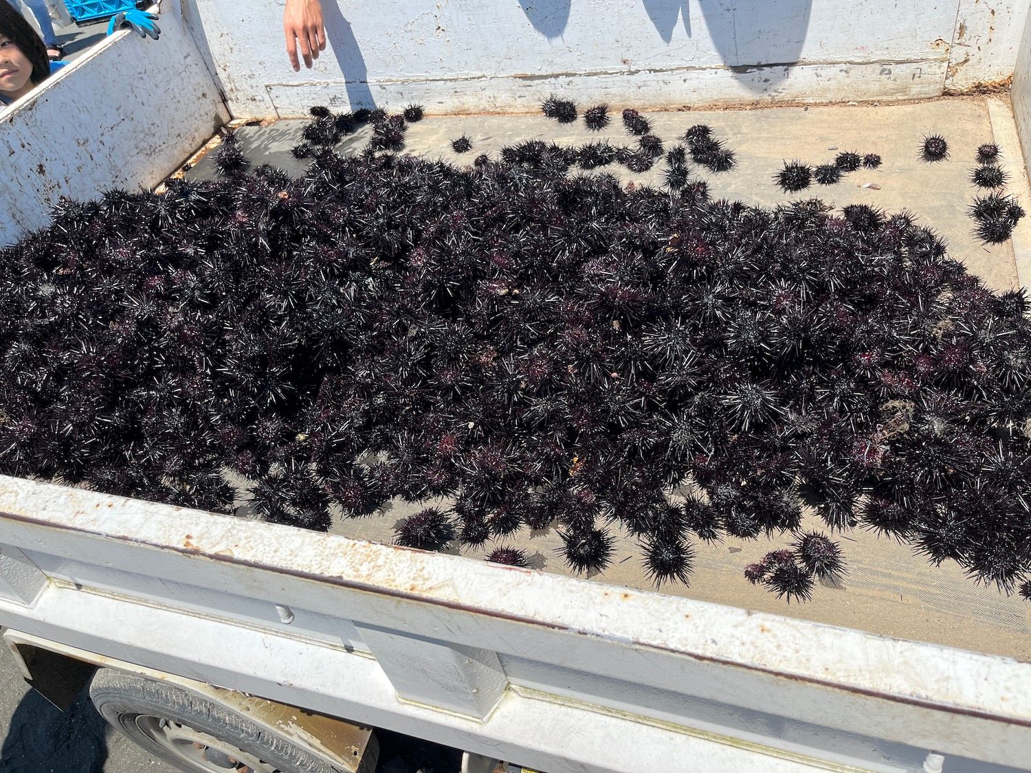 ウニを取り始めると数分でコツが掴めるようになります。岩の上の見える所にもいますが、岩陰をほじくるとウニがゴロゴロ出てきます。憶測できっとここにいるだろうと見立てて本当に見つけるとなんか気持ちがいいのです。この感覚が楽しかったです。でも話を聞くと今回はいつもの半分くらいのようです。